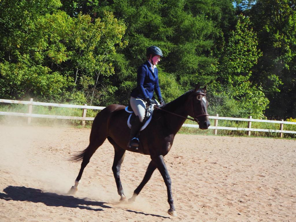 Pumpkin is a 6 year old OTTB who joined our lesson program last summer after retiring from the racetrack. Don’t let his background fool you – this race horse can be quite lazy! He has just started jumping and teaches many of our riders how to trot.