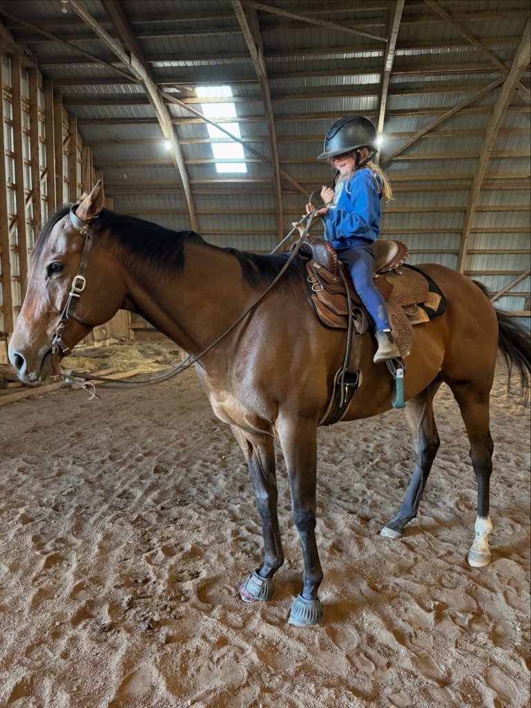 Prince is an 8 year old thoroughbred who pretends to be mustang! He goes both English & Western, and has been used in many of our walk-trot beginner lessons.
