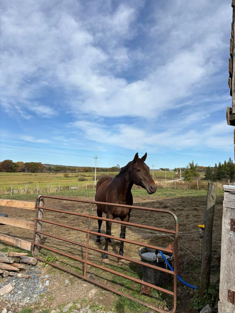 Babe is a 5 year old OTTB who arrived to the farm with Pumpkin. This pretty lady is still very green under saddle, but has taught some of our riders how to work with a horse with more energy. Her sweet nature makes her a barn favourite.